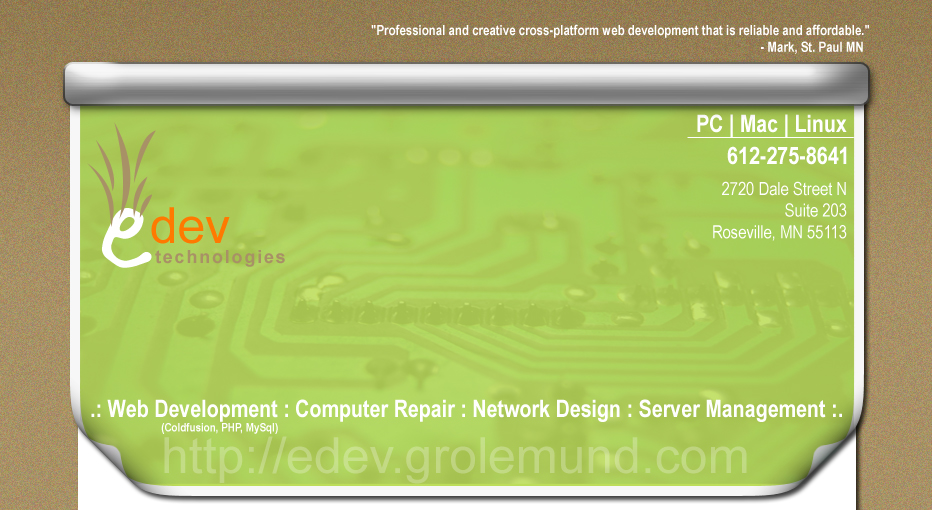 "Within the first three seconds of a new encounter, you are evaluated… even if it is just a glance." First impressions mean a great deal to us and impact our decision making process when establishing new relationships. The same can be said when you are looking for the perfect business to create your presence on the web. eDev Technologies is your solution for quality services at a price you can afford. With more than 15 years of experience we pride ourselves on getting the job done quickly and professionally. |